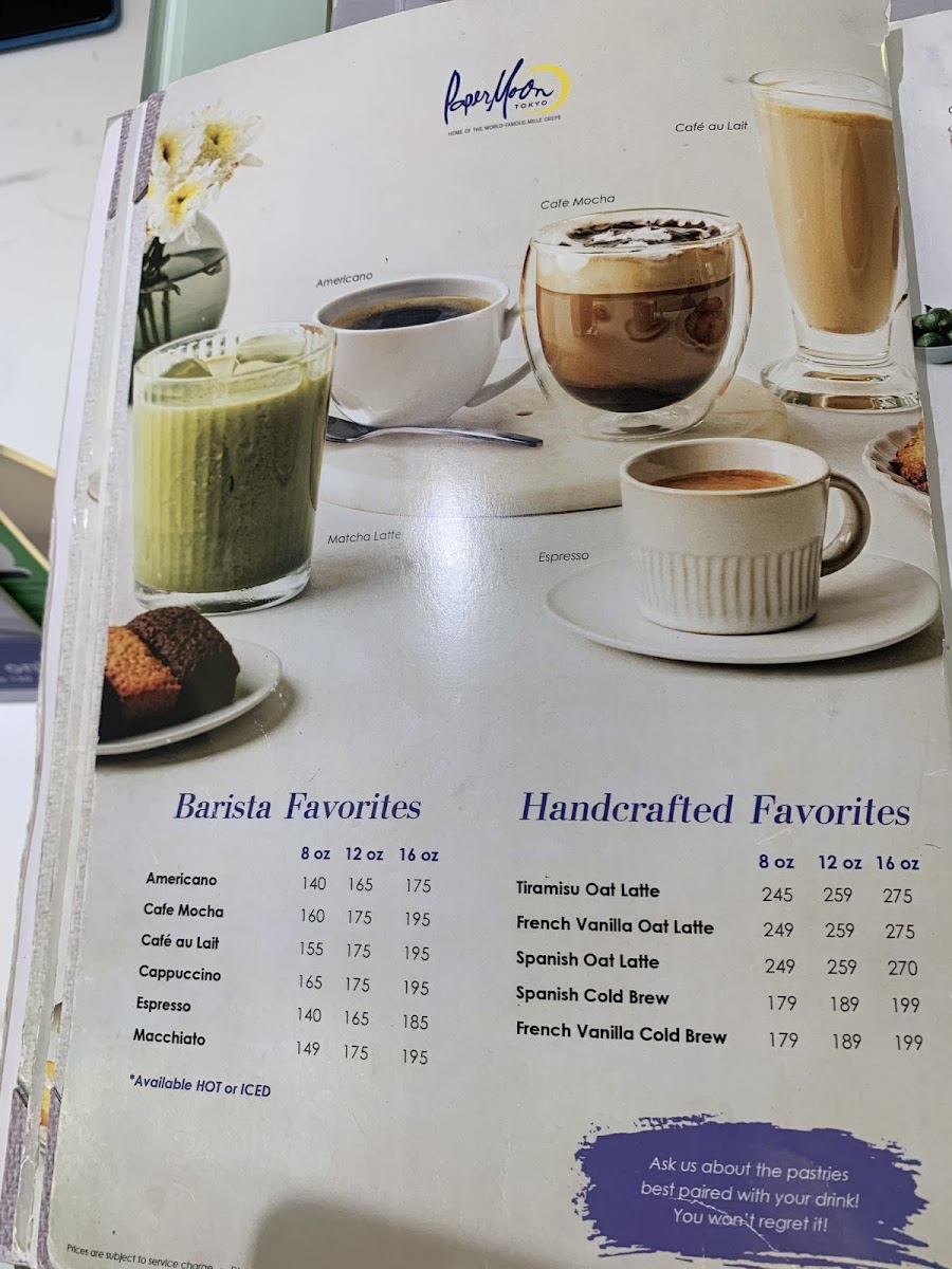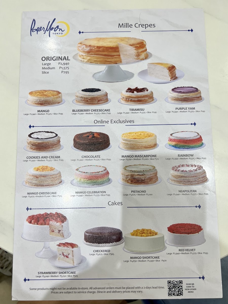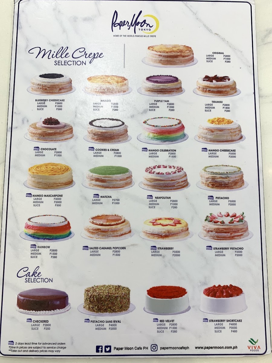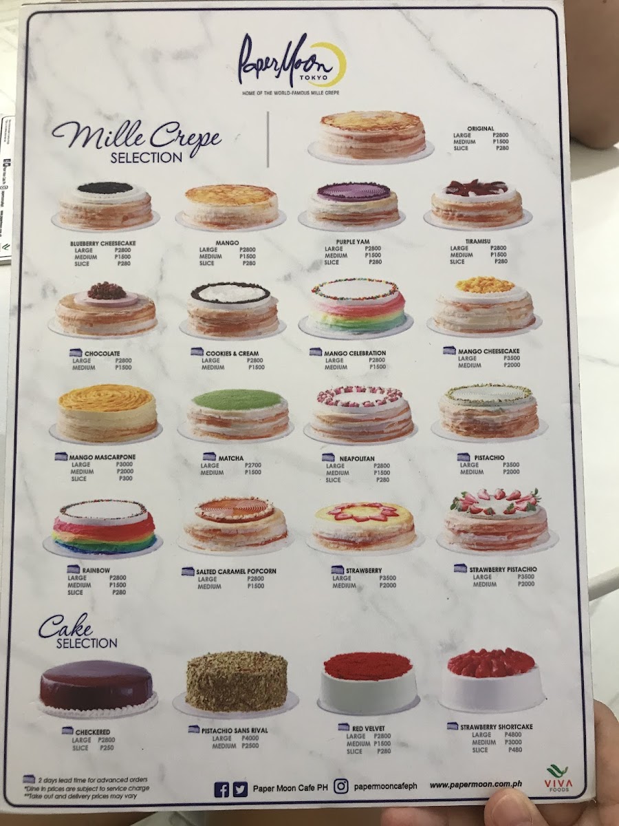 Tiramisu meets a delectably exquisite paper moon twist be swept away by the new tiramisu mille crepes layers upon layers of our signature paper-thin crepes fresh cream with luscious mascarpone cheese & coffee liqueur-laced light chiffon all topped with cream & French cocoa powder dusting